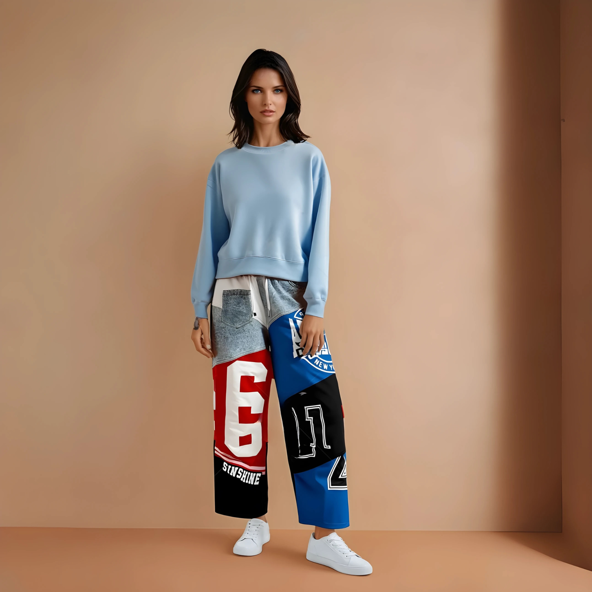 The pants feature a vibrant multi-color patchwork design with graphic prints, numbers, and text β giving it a sporty, urban vibe. The relaxed fit and elastic waistband ensure all-day comfort, making them perfect for streetwear enthusiasts.