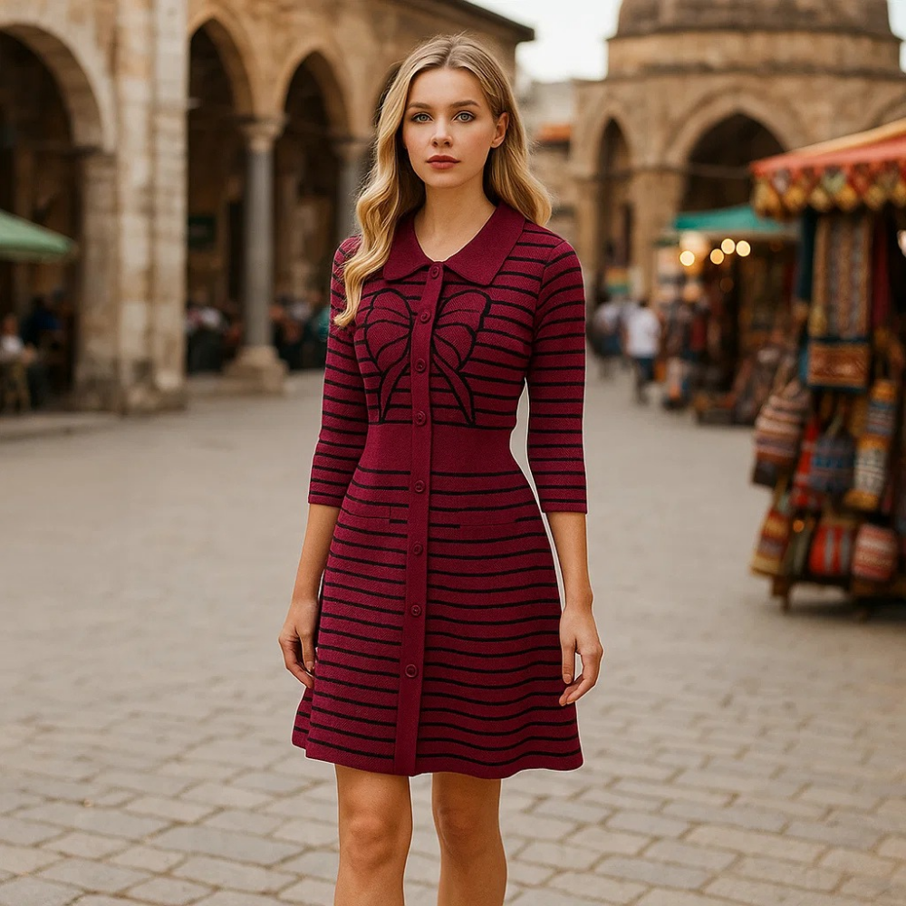 🧵✔️ The striped pattern gives a chic and trendy look, making it ideal for winter outings, festive gatherings, shopping days, or cozy dinner nights.